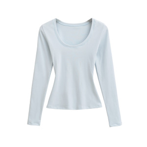 奶蓝色U领