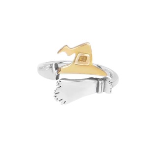 s925纯银万圣节南瓜巫女魔法扫把戒指 男女情侣对戒ins小众设计感