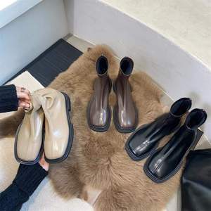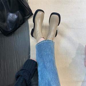 法式小踝靴2025年新款韩版复头软皮瘦瘦短靴女平底切尔西靴秋