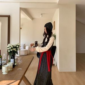 慵懒风针织吊带连衣裙秋冬2025新款无袖叠穿背心裙收腰长款毛衣裙