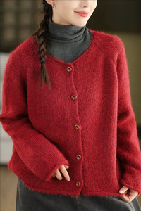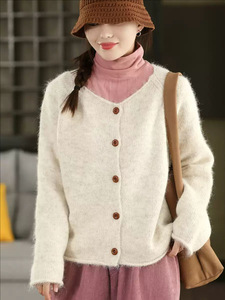 圆领针织开衫 2025秋季新款 保暖长袖毛衣外套女时尚圆领上衣2622