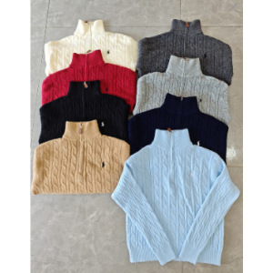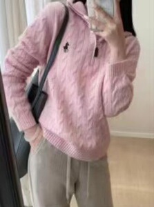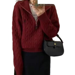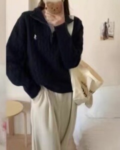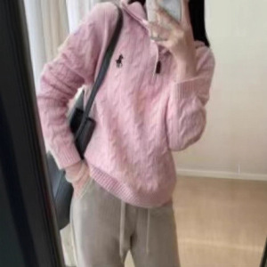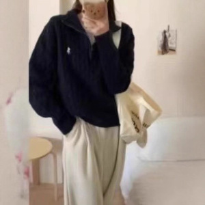 跨境秋冬半拉链麻花刺绣针织外套女2025款韩系慵懒风小马休闲毛衣