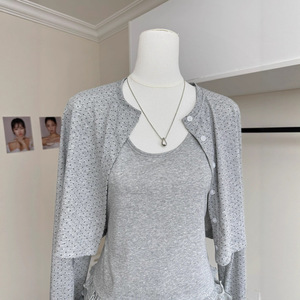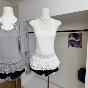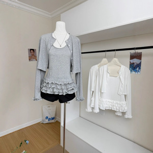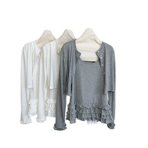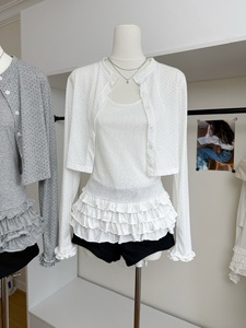 韩系波点短款开衫+木耳边修身内搭吊带两件套套装2025秋季新款