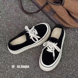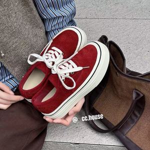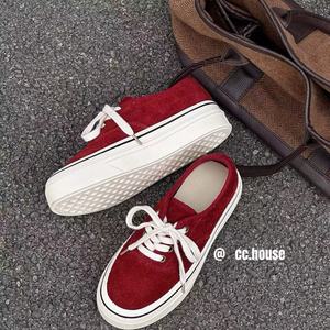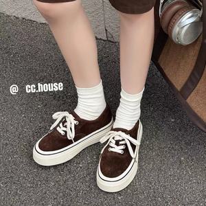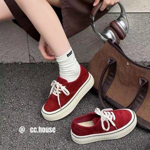 2025年秋季新款真皮厚底磨砂牛皮休闲系带运动鞋板鞋女ins