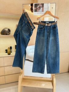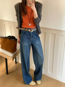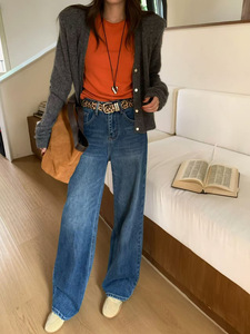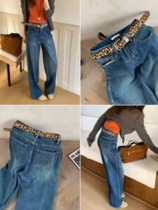 秋TOP欧制广州十三行韩版休闲百搭版型利落阔腿牛仔裤配腰带61636