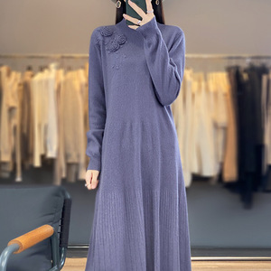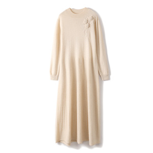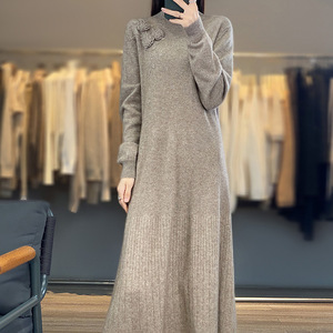 100%纯羊毛2025秋冬新款女装宽松圆领毛衣裙过膝长裙针织衫连衣裙