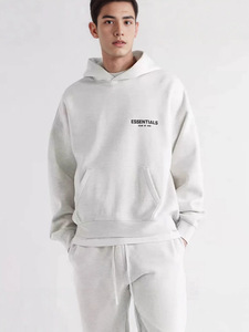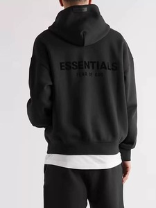 跨境ENTIALS复线SS22植绒连帽卫衣男款高街宽松字母印花连帽上衣