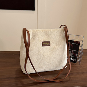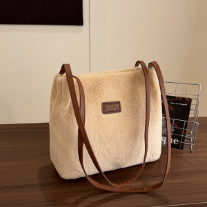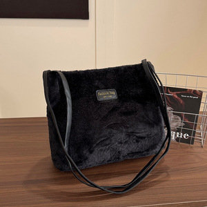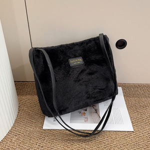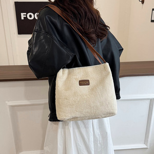 秋季时尚毛绒包包女2025休闲百搭大容量通勤托特包质感单肩手提包