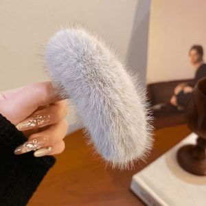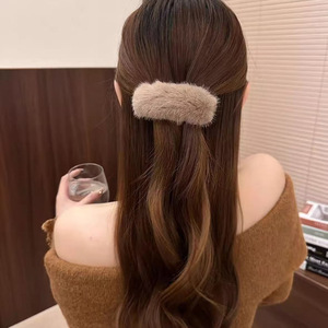 2025年新款一字扭扭夹仿水貂毛绒韩系温柔毛毛发夹后脑勺盘发发卡