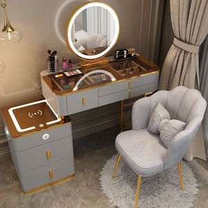 北欧卧室化妆台现代简约多功能一体柜化妆桌智能梳妆台无线充电