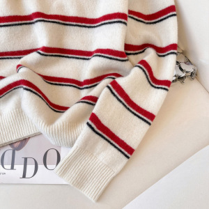 复古彩色条纹针织女2025秋冬新款撞色显瘦减龄长袖毛衣上衣