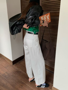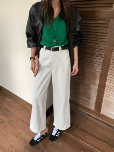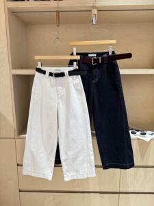 秋TOP欧制韩广州十三行版简约休闲百搭九分奶奶牛仔裤配腰带82553