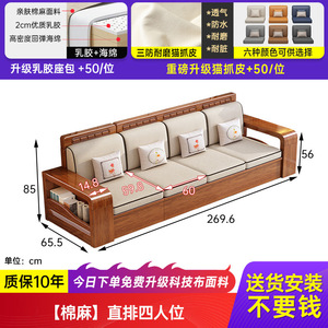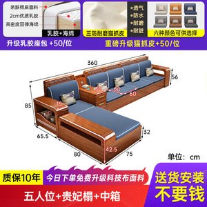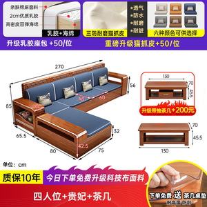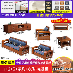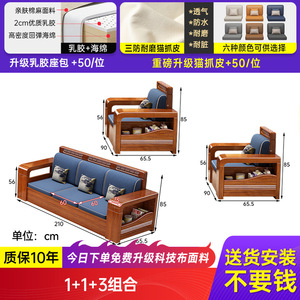 小户型胡桃木全实木沙发客厅出租屋用三人位直排储物沙发茶几组合