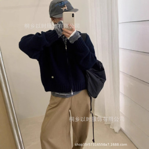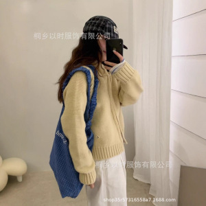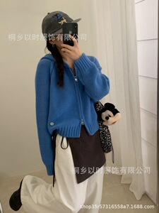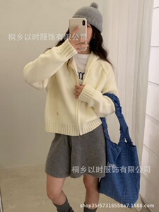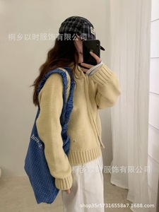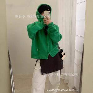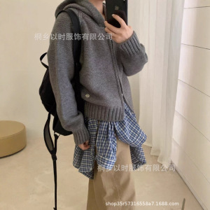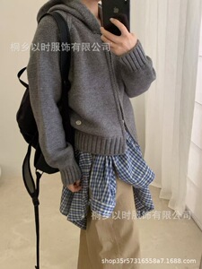 以时 25秋冬季宽松连帽毛衣外套 韩系百搭简约厚实拉链针织开衫女