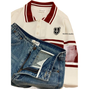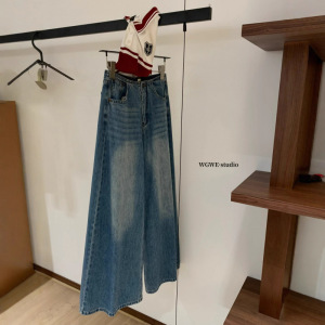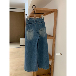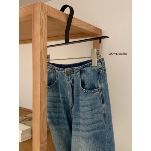 塞纳WGWE7137秋季新款复古做旧宽松显瘦高腰百搭阔腿直筒牛仔裤女