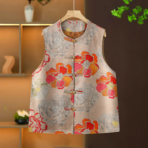 中老年国风马甲背心夏季复古盘扣重工提花坎肩妈妈无袖马夹外穿女