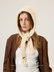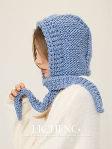 北欧冰岛蓝手钩粗棒巴拉克拉法帽女秋冬季保暖日系围巾一体针织帽