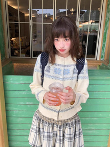 费尔岛提花圆领长袖毛衣外套女秋季新款韩系针织开衫软糯舒适上衣