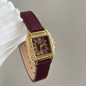 IEKE抖音直播款女士复古皮带小方表镶钻简约时尚石英女士手表批发