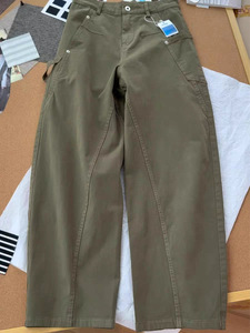 原物推荐!美式复古军绿色不对称口袋设计廓形休闲工装裤弯刀裤女