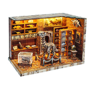 diy小屋恐龙研究院模型木质拼装书立3d微型场景手工立体拼图礼物