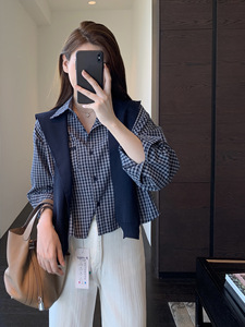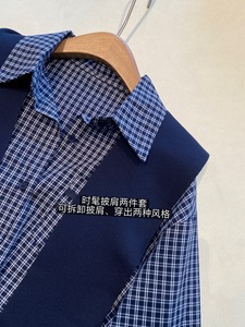 设计感小众披肩衬衫两件套格子衬衫外套女上衣2025早秋新款