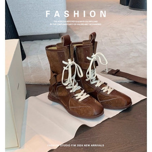 百搭侧拉链同款拼色款绑带猎装时髦秋冬复古马丁靴女德训葡萄妈