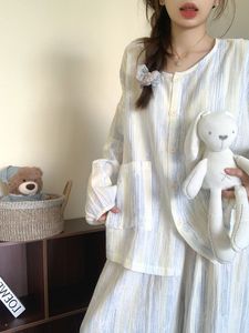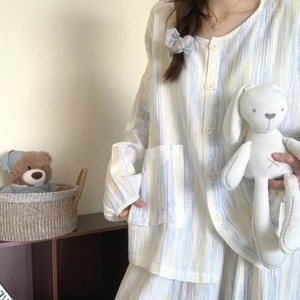 云朵棉睡衣女春秋条纹长袖套装可爱学生家居服外穿foreign trade