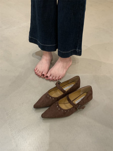 感坡跟晚风气质小众单鞋女鞋子2025秋冬尖头通勤晚晚奶奶鞋子