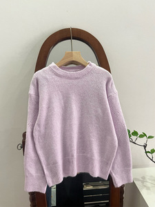槿一 圆领套头长袖毛衣女秋季设计感镂空针织衫内搭复古通勤百搭