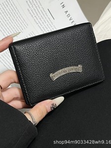黑色竖款皮质名片包 简约皮质名片夹 商务随身黑色卡包多功能女款