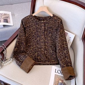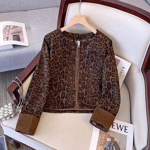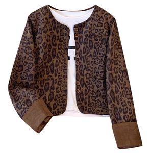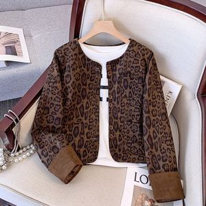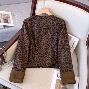 美拉德麂皮绒豹纹小香风外套女士2025春秋冬新款短款上衣夹克