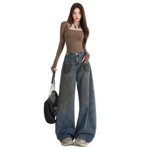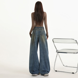 美式宽松牛仔裤女秋季新款高腰设计感怀旧垂感直筒百搭拖地阔腿裤