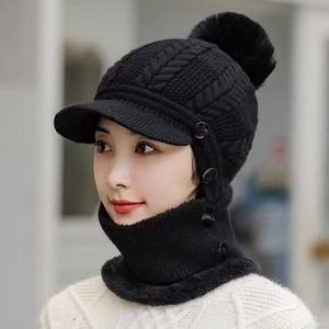 秋冬款帽子女针织防寒帽围脖连体护脸口罩帽子围脖纯色加绒保暖帽