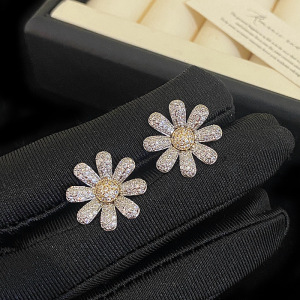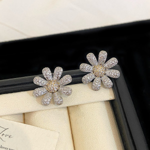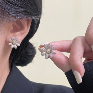 雏菊向日葵花朵满锆耳钉女超闪权志龙同款ins风精致轻奢耳环耳饰