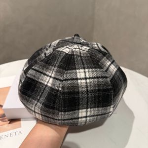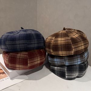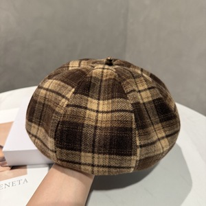 2025年新款复古格纹八角帽子女春秋英伦风百搭画家帽显脸小贝雷帽