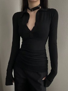 基础百搭V领长袖T恤上衣新款修身显瘦收腰亲肤打底衫女