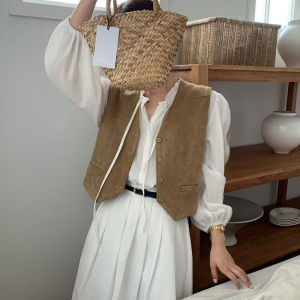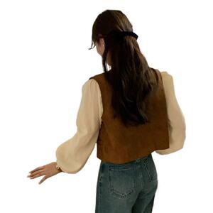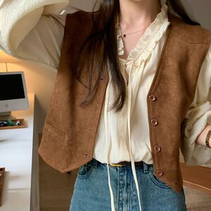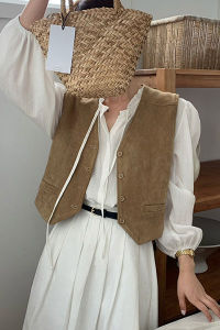 春装复古马甲女2025新款英伦风叠穿V领开衫上衣外搭坎肩马夹外套