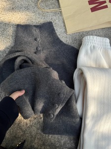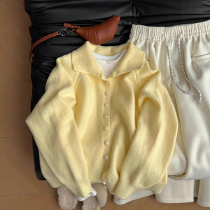 秋冬流行韩版上衣女polo翻领毛衣单排扣外套气质软糯高领针织开衫