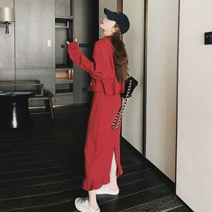 早秋气质减龄小众设计感卫衣女高腰遮胯藏肉半身裙春秋两件套装裙