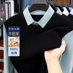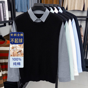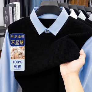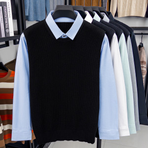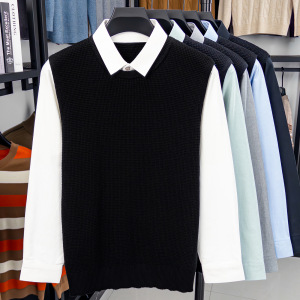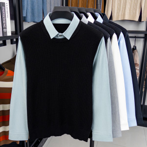 2025翻领针织衫假两件2025秋季新款商务休闲时尚衬衫领长袖打底