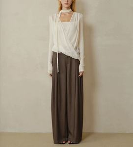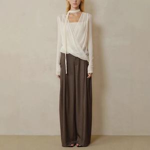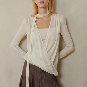 someone sometime原创垂褶交叠网纱假两件丝绒挂脖羊毛针织上衣