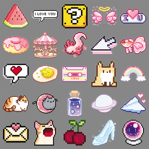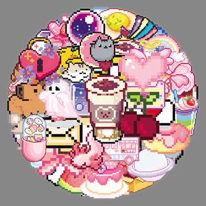 50张像素风透明贴纸卡通PET可爱创意跨境防水装饰DIY手机电脑贴纸