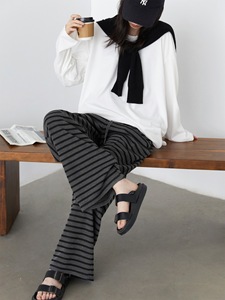 CHICVEN「怀旧学院」慵懒风条纹阔腿裤垂感直筒遛弯裤休闲裤秋女