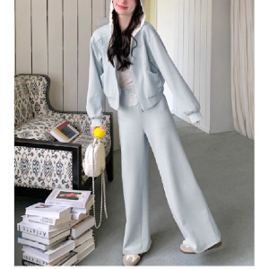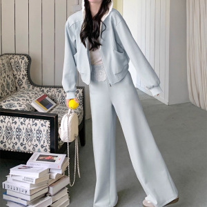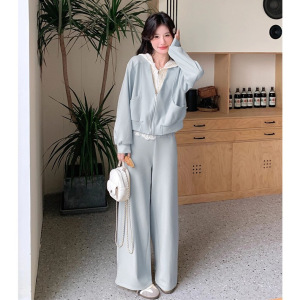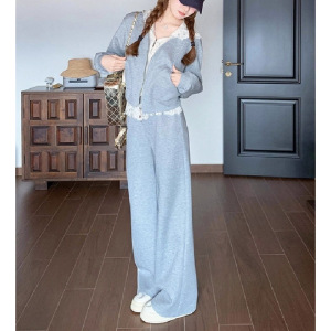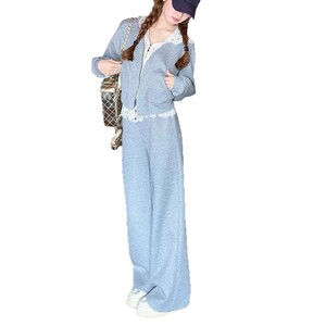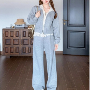 双色系洋气蕾丝拼接运动套装女2025秋韩系宽松减龄卫衣阔腿两件套