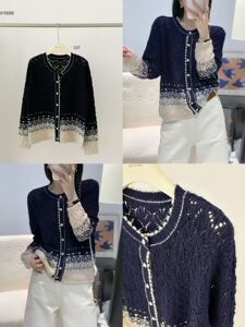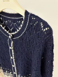 2025秋新款渐变色镂空亮片针织开衫女宽松小个子软糯休闲毛衣外套