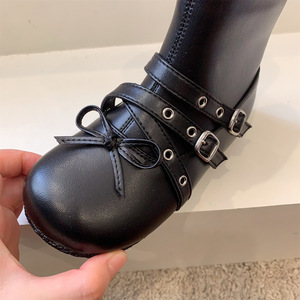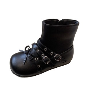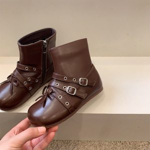 打孔蝴蝶结时尚童鞋3-6岁女儿童靴子女童马丁靴复古女孩短靴秋冬