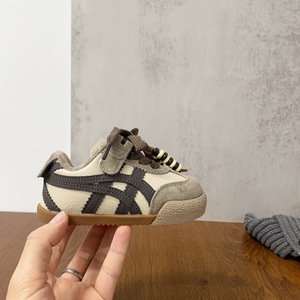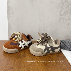 串珠流苏装饰拼色图案休闲风阿甘鞋2025年冬款男女童保暖小板鞋批