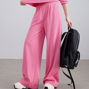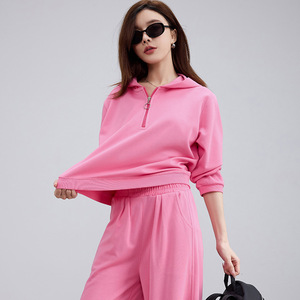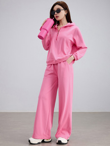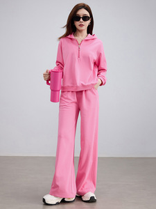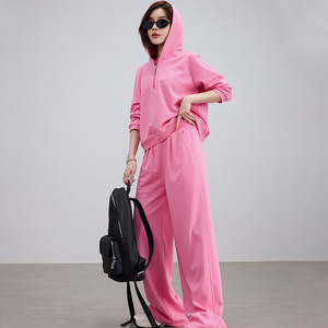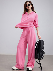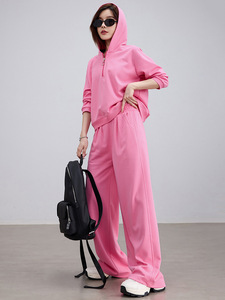 超酷玫粉色连帽卫衣阔腿长裤两件套装2025秋装小个子休闲运动套装