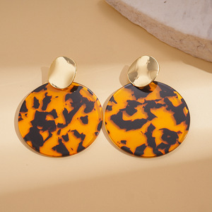 欧美夸张个性亚克力晕染圆形豹纹银针耳环跨境小众高级感复古耳饰